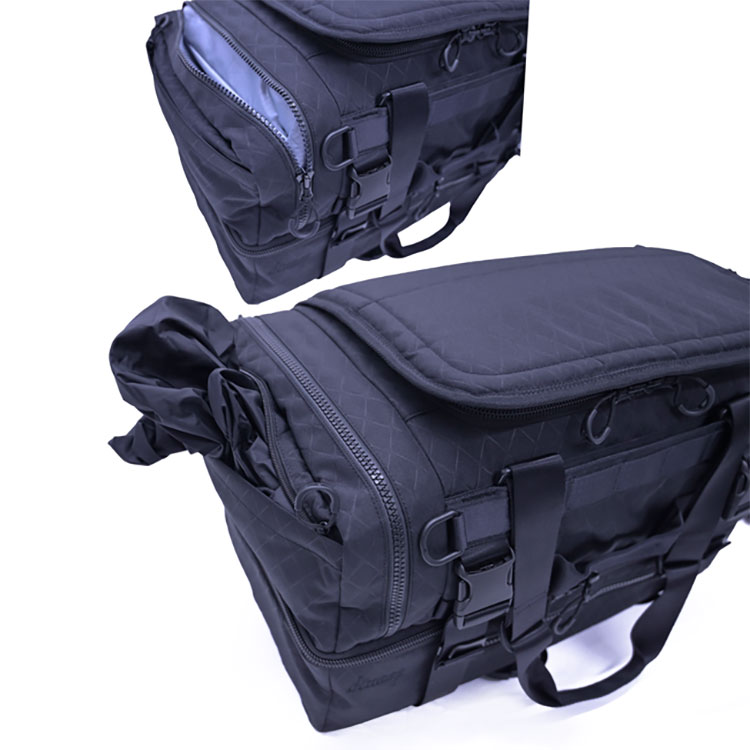 ■ オリジナルエンボス加工を施し、耐久性に優れたコーデュラ生地に撥水加工を加えたことで、あらゆるシーンで活躍