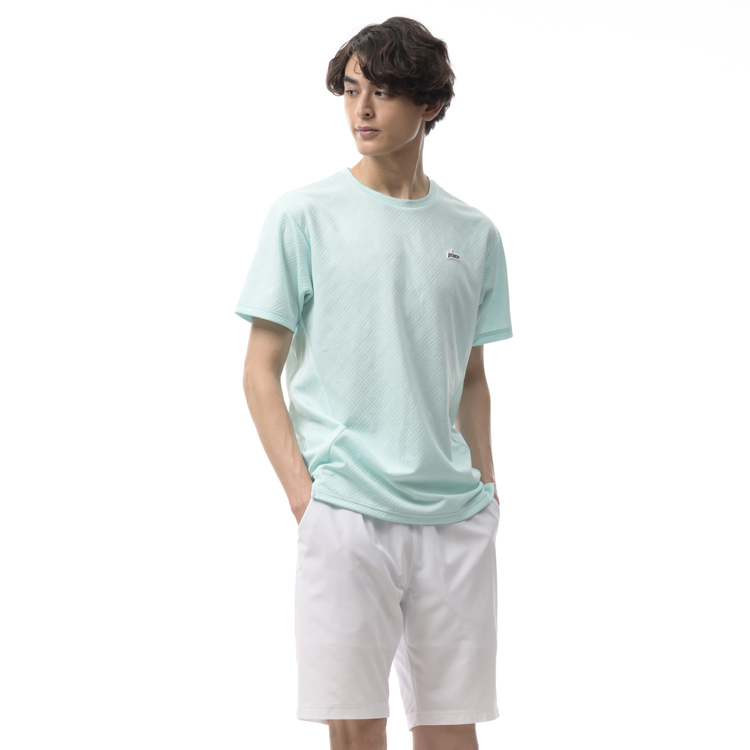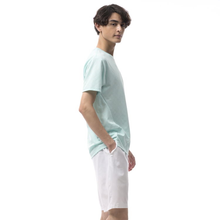 - チェック柄のジャガード素材を使用したゲームシャツ 脇の切り替えとスリットがポイント 遮熱繊維により、衣服内の温度上昇を抑制(体感約-3℃)